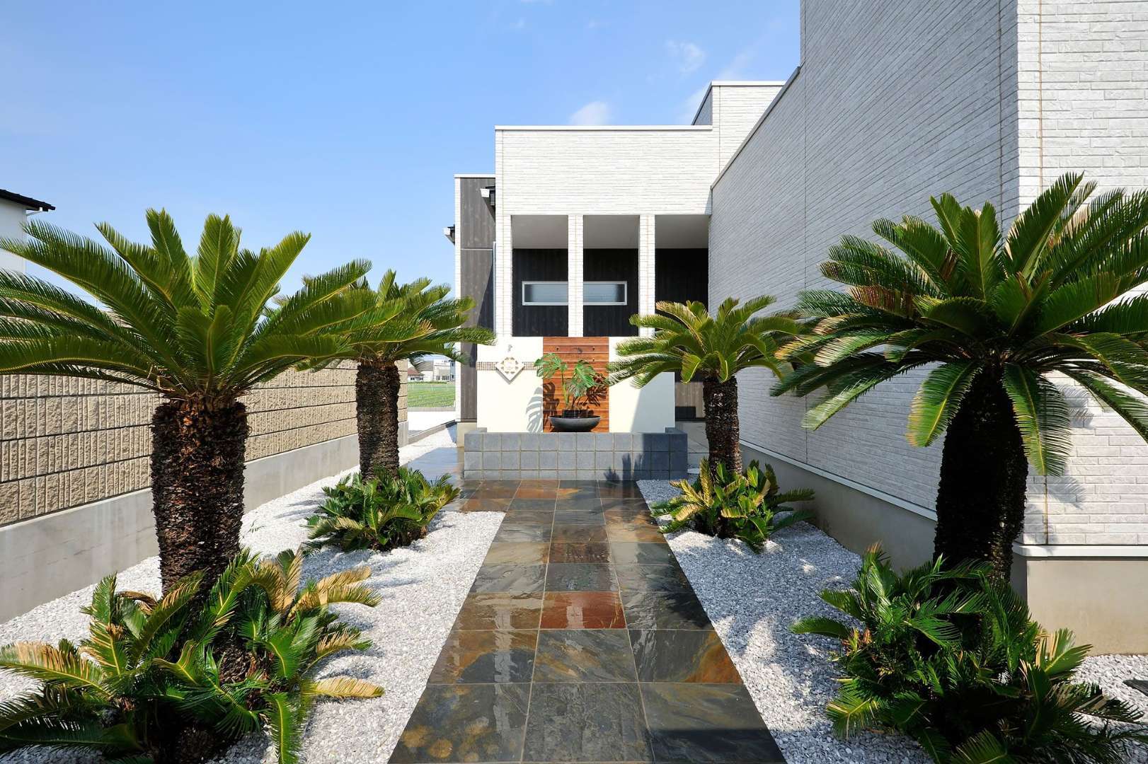 玄関までの道を石材やコンクリートなどで舗装し、歩きやすさ・見た目の美しさを整えます。